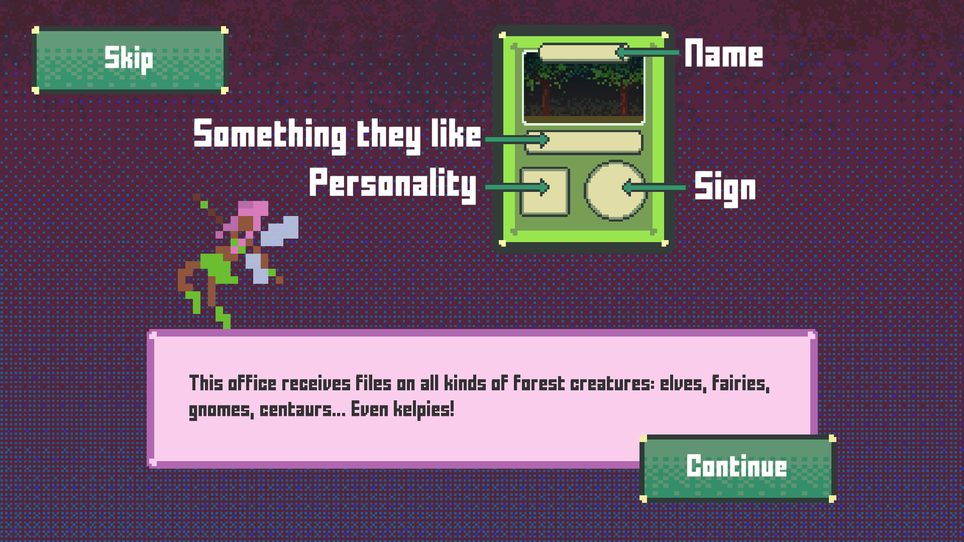 This office receives files on all kinds of forest creatures: elves, fairies, gnomes, centaurs... Even kelpies!