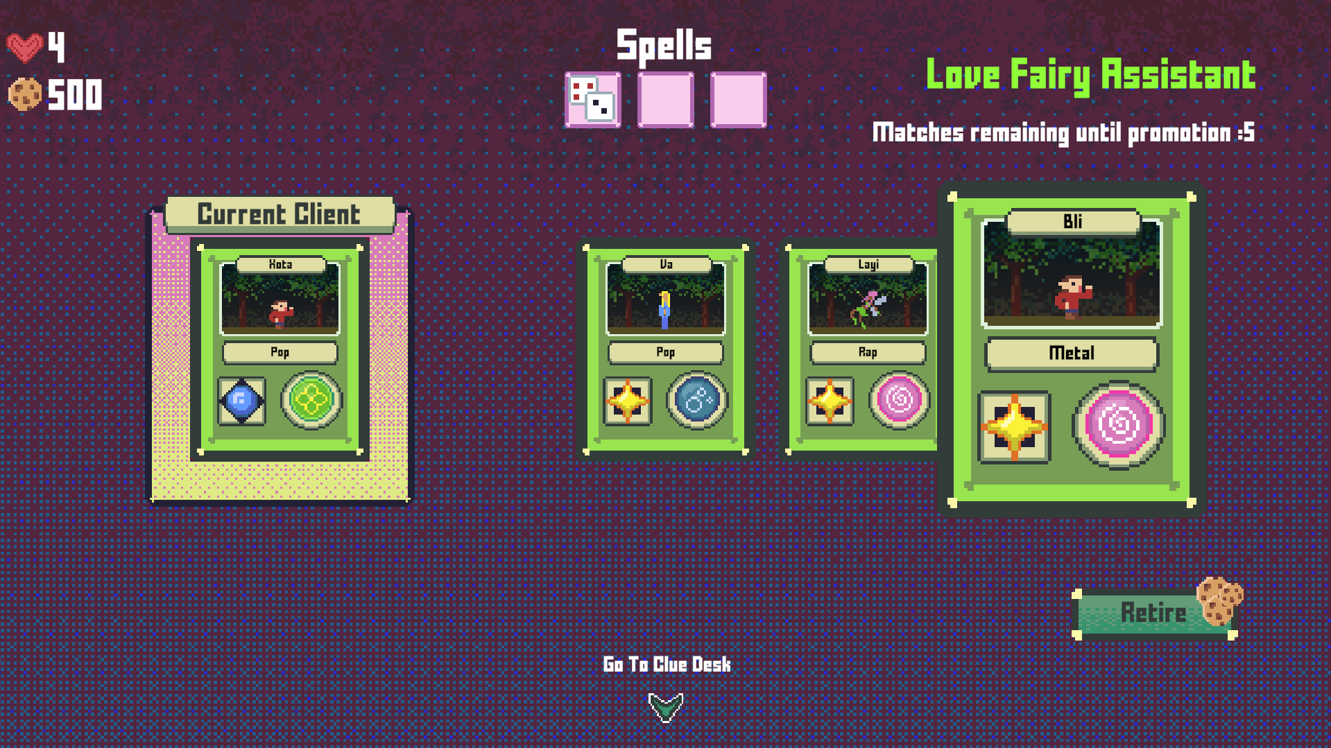 Cute little game. I used my client change spell when I probably didn't need to and ended up needing it bad when they had nothing in common. xD